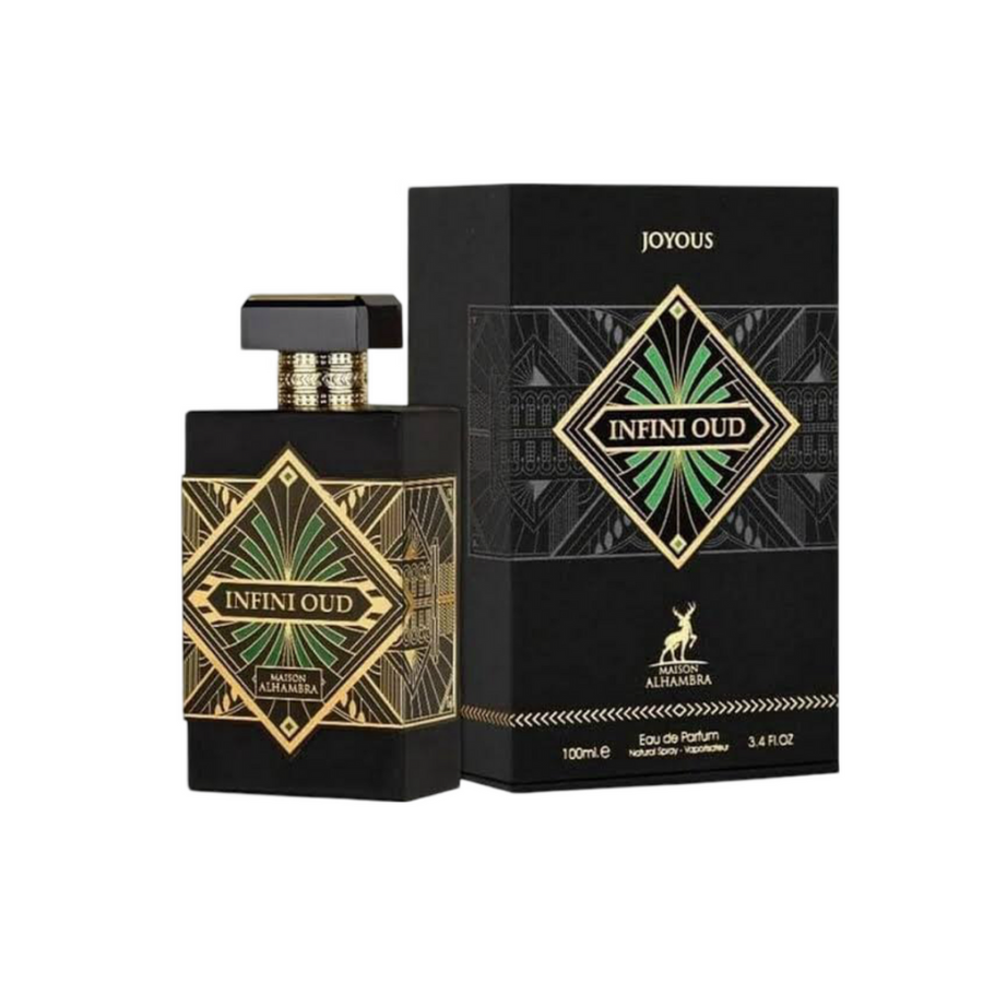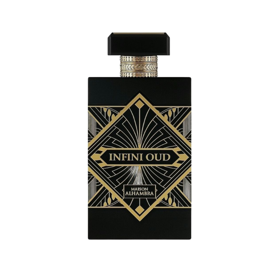 Infini Oud de Maison Alhambra es una fragancia de la familia olfativa Amaderada Aromática para Hombres y Mujeres. Infini Oud se lanzó en 2022. Las Notas de Salida son nuez moscada y lavanda; las Notas de Corazón son madera de oud y pachulí; las Notas de Fondo son madera de oud, pachulí y almizcle.